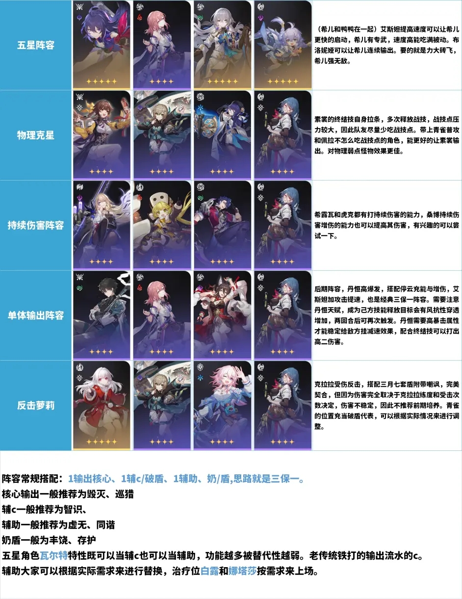 崩坏星穹铁道全角色定位与十大阵容推荐