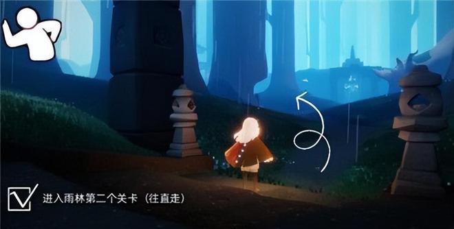 注:想要完成先祖点亮任务,就需要点亮先祖后朝着树桩的左边走,碰见先祖后再顺着游戏提示走(先到树桩底下,再顺着楼梯往上走就可以完成任务了)。
